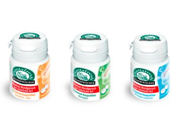 Our successful herbal breath freshener with no menthol: For lasting fresh breath and a safe, pleasant feeling in your mouth. Based on the natural, anti-odor effects of various natural herbs, these drops take effect immediately on dissolving , reliably combating bad breath.
